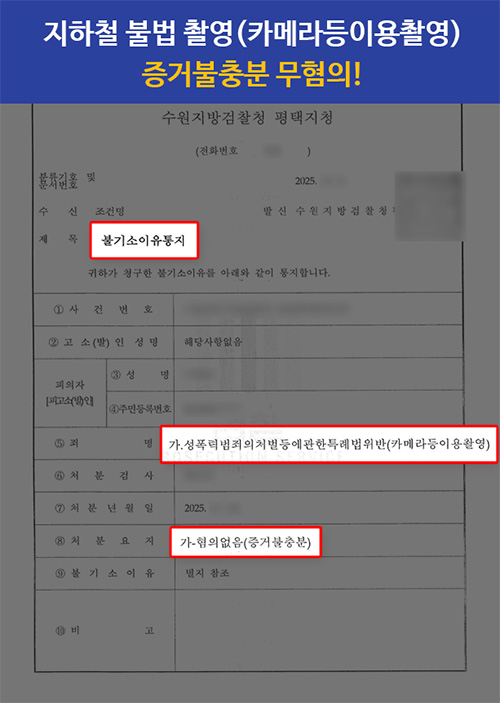 지하철 촬영 혐의, ‘카메라등 이용촬영’ 무혐의(혐의없음) 불송치 결정 이끌어내